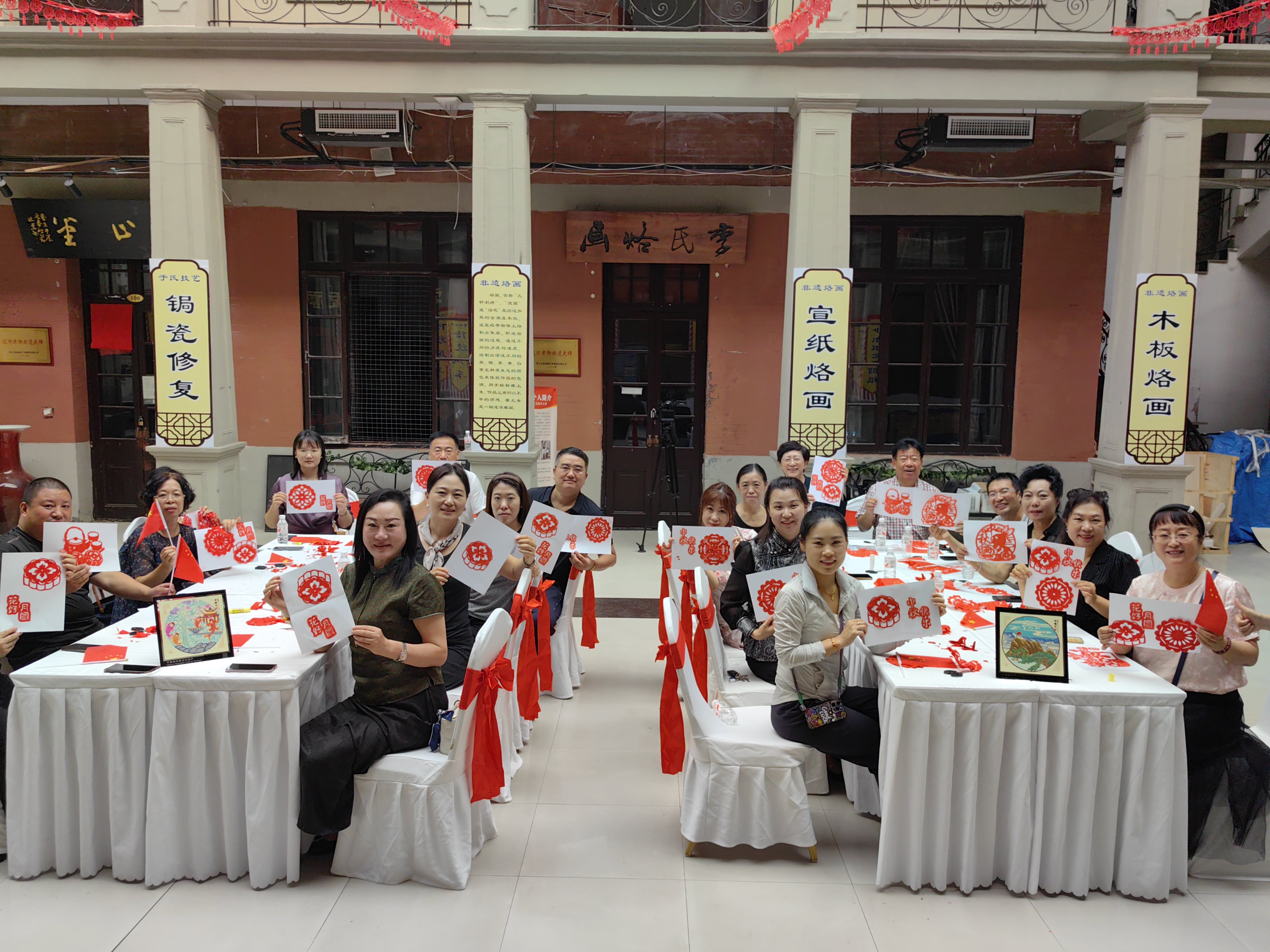 营口市非物质文化遗产项目、伊尔根觉罗氏剪纸代表性传承人赵玲玲讲述了伊尔根觉罗氏剪纸艺术的历史渊源、文化传承和艺术特色,并现场教授剪纸的基本技巧。大家小心翼翼地制作着一件件属于自己的剪纸作品,用这一传统艺术剪纸诠释了对非遗文化的理解,表达了对祖国和家乡的眷恋和热爱。
